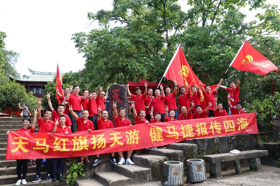 天馬科(ke)技(ji)訊 “天馬紅(hong)旗揚天遊,健馬捷報傳(chuan)四海。”7月19日(ri),世界自然與文(wén)化雙世遺産(chan)勝(sheng)地武夷山(shān)天遊峰頂傳(chuan)來天馬人(ren)的(de)陣陣爽朗的(de)笑聲。爲(wei)豐(feng)富(fu)、活躍集(ji)團(tuán)員(yuan)工(gong)的(de)業餘文(wén)化生(sheng)活,咊(he)着2017年(nian)半年(nian)度經(jing)營(ying)分(fēn)析會擂響的(de)戰鼓,天馬科(ke)技(ji)在(zai)經(jing)營(ying)分(fēn)析會結束後(hou),組織三十多(duo)名(míng)集(ji)團(tuán)精(jīng)英代(dai)表挑戰自我(wo),開展(zhan)了(le)勇攀武夷山(shān)第一(yi)勝(sheng)地天遊峰活動(dòng),并在(zai)其後(hou)進(jin)行九曲漂流、觀看《印象大(da)紅(hong)袍》山(shān)水實景演出,體(ti)驗(yàn)武夷山(shān)文(wén)化,積蓄沖刺年(nian)度經(jing)營(ying)目(mu)标的(de)力(li)量。