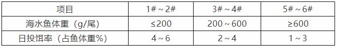 « 根據網箱或池塘中(zhong)海水魚規格及(ji)數(shu)量,參考投(tou)餌參考表中(zhong)推算投(tou)餌量,再根據天氣(qi)、水溫、水質(zhi)、海水魚攝食及(ji)健康狀況等(deng)予以(yi)适當調整。