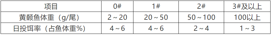 « 根據黃颡魚規格及(ji)數(shu)量,參考投(tou)餌參考表中(zhong)推算投(tou)餌量,再根據天氣(qi)、水溫、水質(zhi)、餌料檯(tai)觀察情況、黃颡魚攝食及(ji)健康狀況等(deng)予以(yi)适當調整。